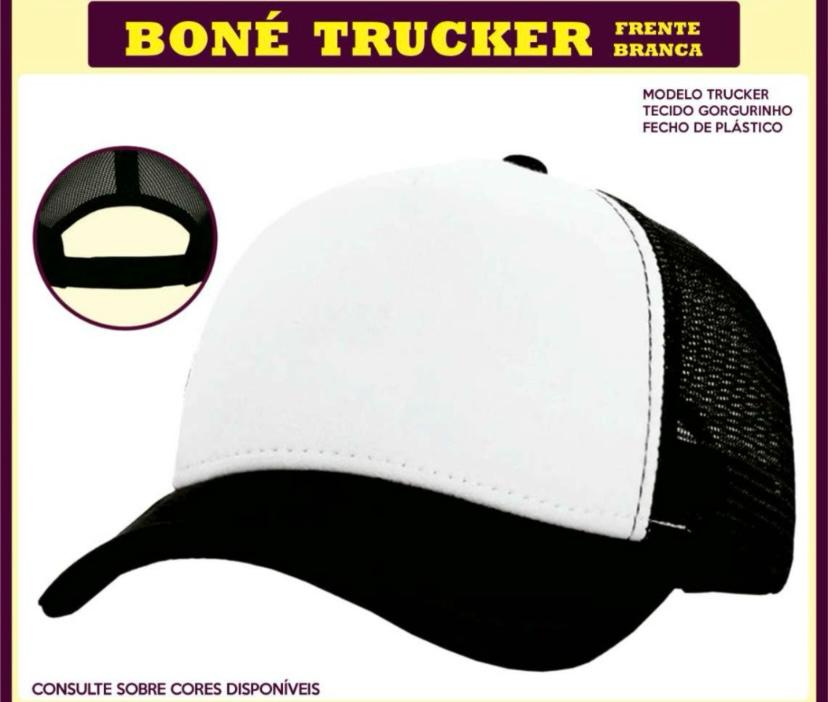 Boné Modelo Trucker frente branca fecho de plástico
